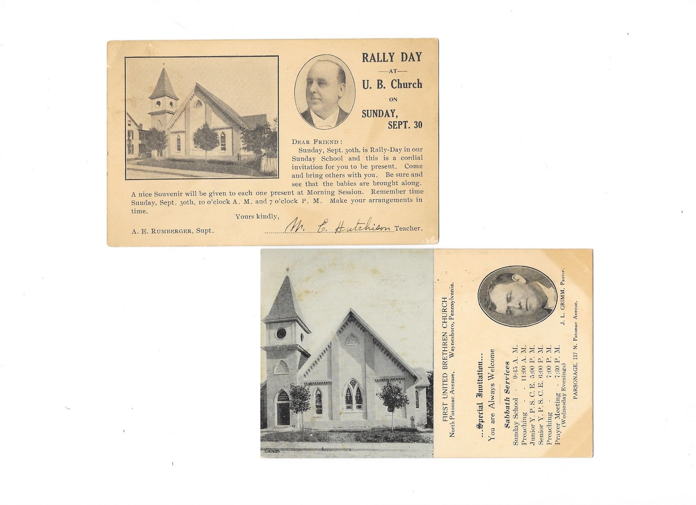 Brethren Church Special invitation postcards, PM 1909