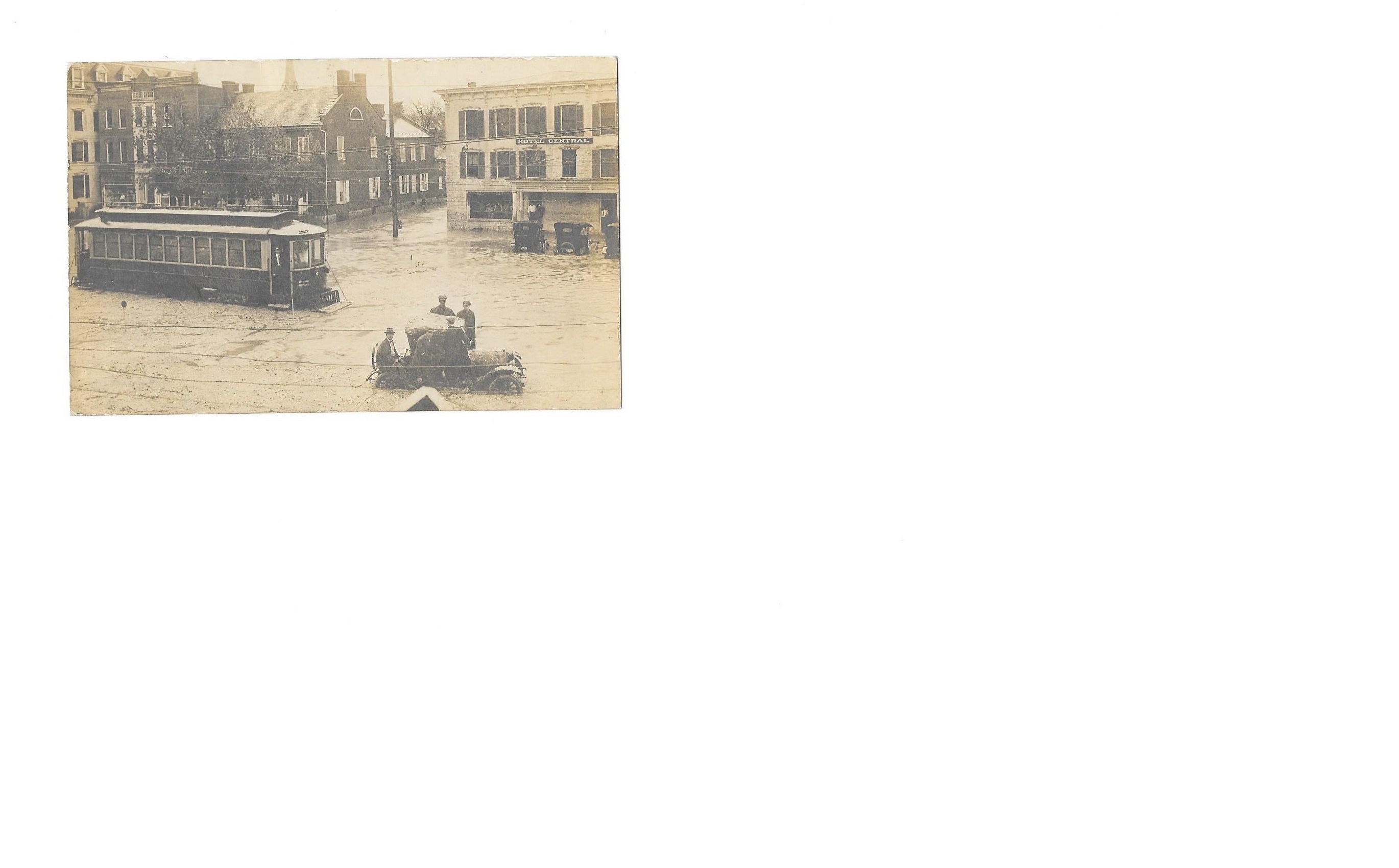 Trolley in Center Square after the Hail Storm on 6/6/17, RPPC